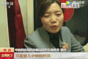 由于部分路段积雪,列车晚点十分钟。原本停靠在榆林站的8分钟变成了5分钟。