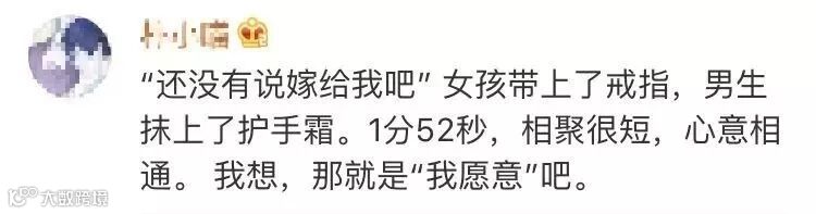 火车开走了,站台上,郝康抹着雷杰送他的护手霜,车厢里,雷杰自己戴上了戒指……这次相遇,只有1分52秒。