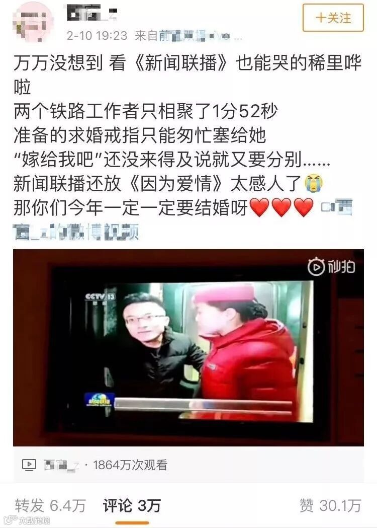 昨天,《新闻联播》“新春走基层”栏目记录的一个发生在春运铁路上的真实爱情故事感动了无数网友。