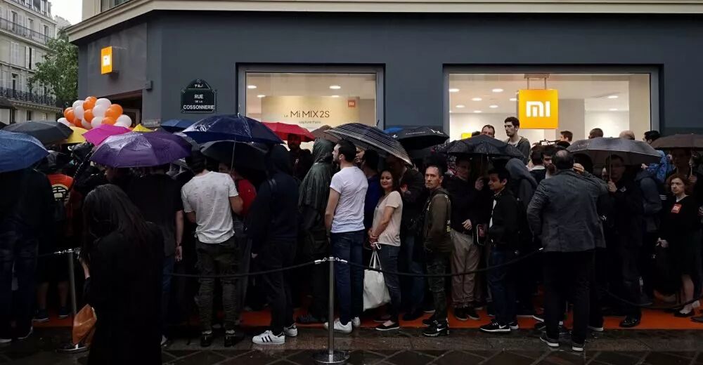 小米一家门店在巴黎开业,消费者冒雨排长队