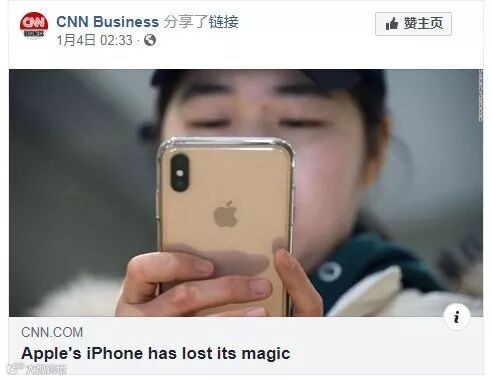 以上是美国媒体CNN在1月3日的报道:苹果手机已经失去了魔力(“Apple's iPhone has lost its magic”)。