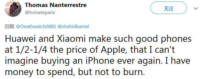 花苹果手机四分之一到一半的钱就能买华为和小米了。我再也不买苹果了。我的钱是用来花的,不是用来烧着玩的。