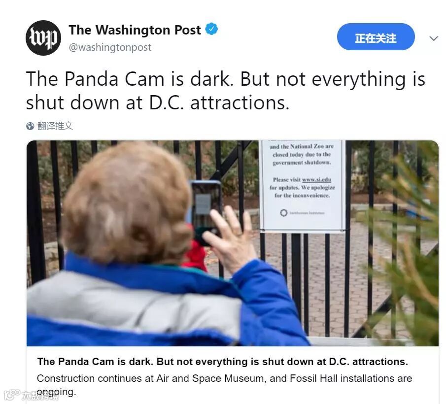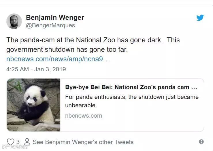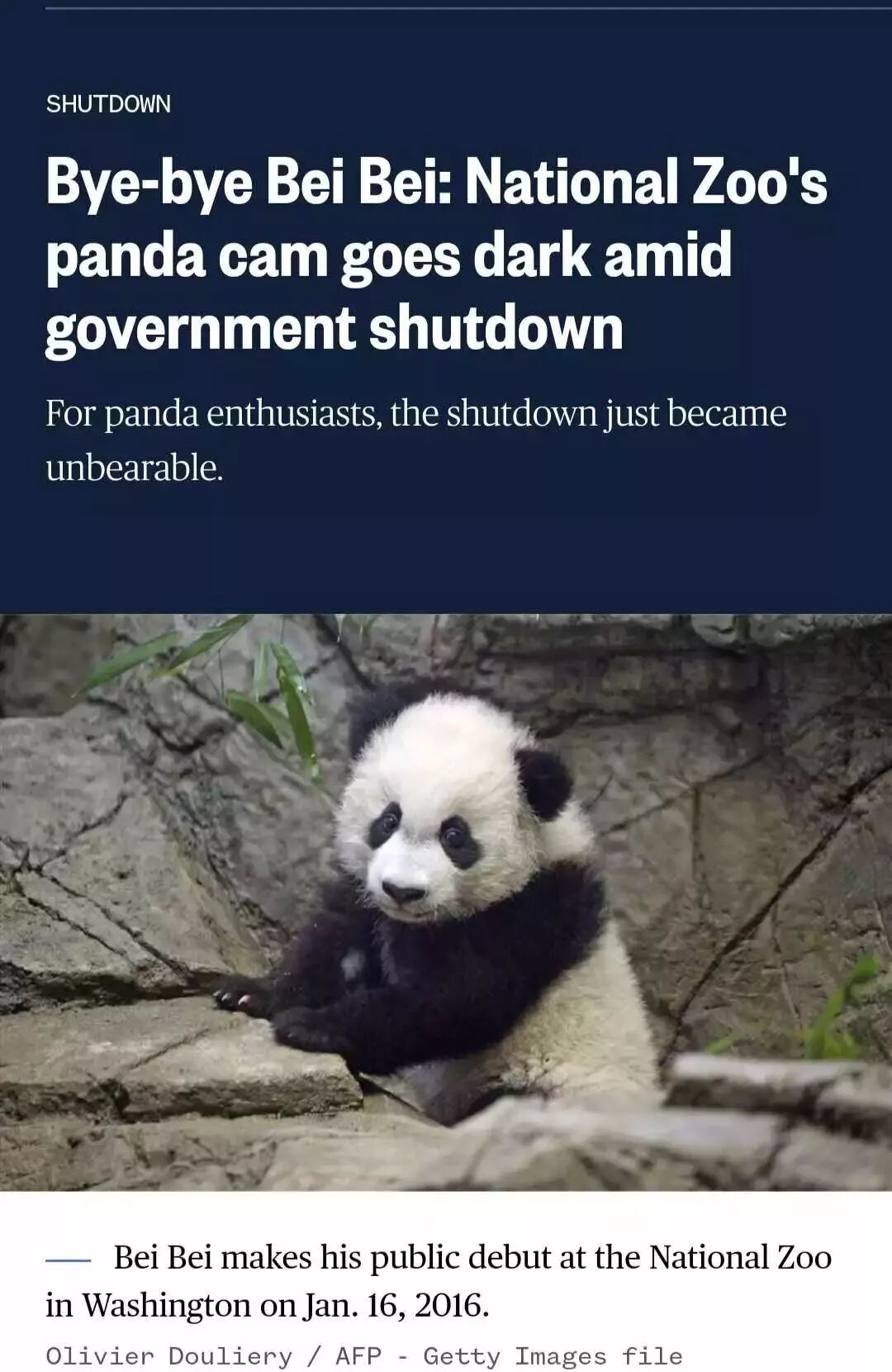 美国全国广播公司(NBC)就发表了一篇题为《拜拜,贝贝!联邦政府关门,国家动物园熊猫直播镜头变黑屏》的报道。