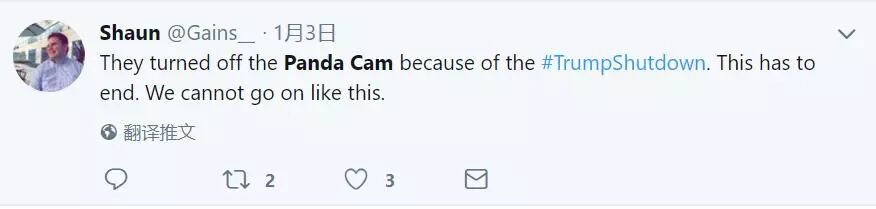 都是因为特朗普,他们才关了对熊猫的直播。他现在就应该结束这场闹剧,重开政府。