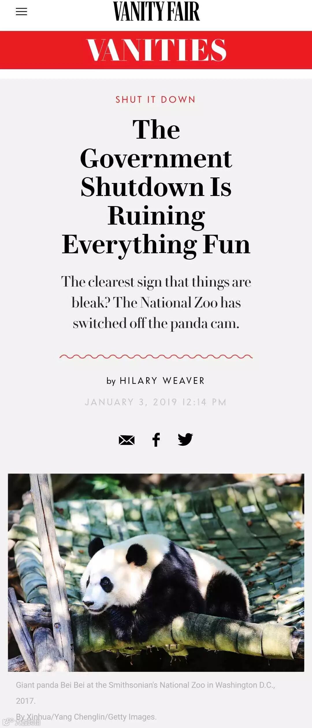 史密森尼国家动物园关闭大熊猫直播,除了引起NBC这样的美国主流媒体注意,就连美国老牌的时尚生活杂志《名利场》(Vanity Fair)也坐不住了。