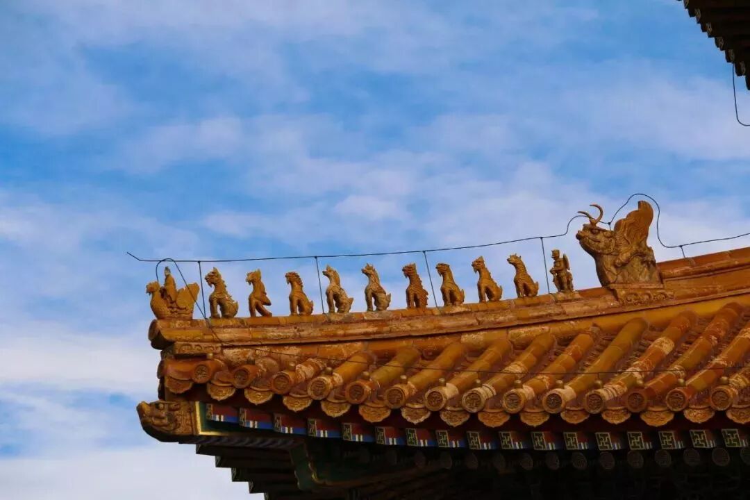屋檐上的脊兽的数量有三、五、七、九……太和殿最多,有十只。根据脊兽的数量就能知道这座建筑在整个建筑群中的地位。