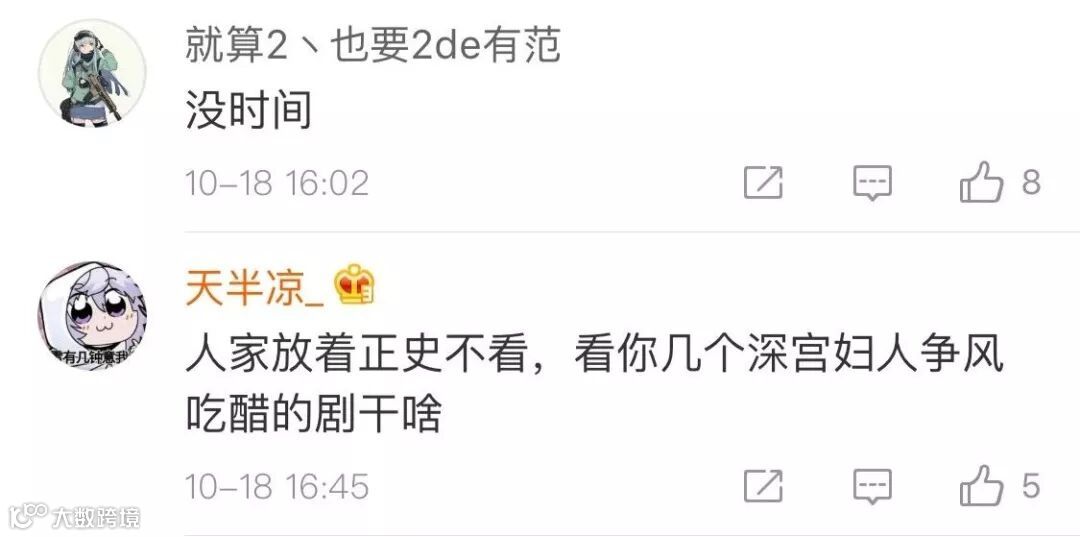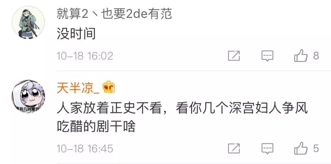 我其实没有时间看(这两部剧),因为正史的东西还看不过来呢!今天大家对于清宫剧可能演绎的比较多。