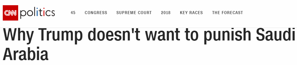 特朗普将会不情愿地被逼加入谴责沙特这种不人道的、违反国际法的野蛮行径。