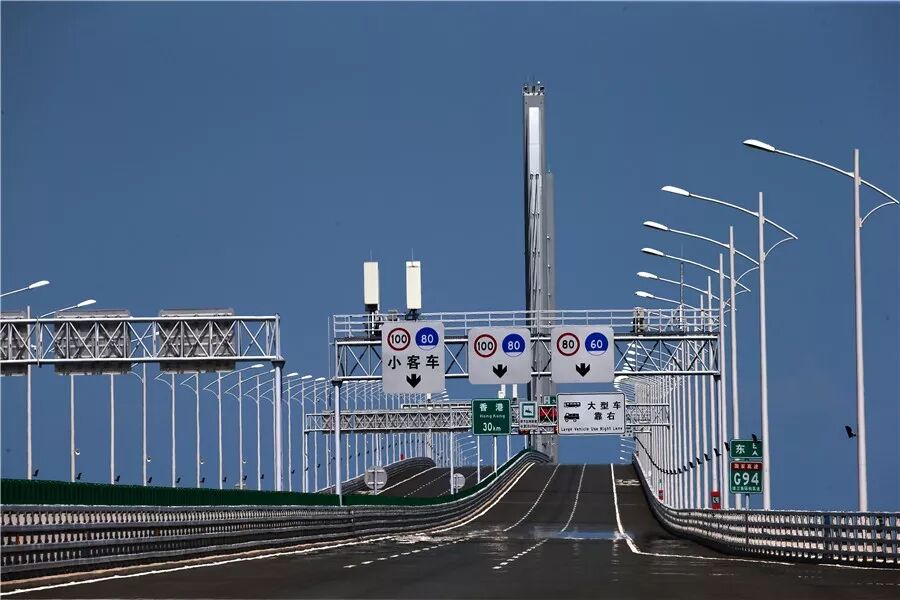 The HZMB has a dual 3-lane carriageway; the speed limit is 100km/h on the main bridge.