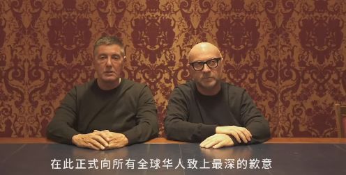 Domenico Dolce和Stefano Gabbana在视频最后用中文说:对不起。