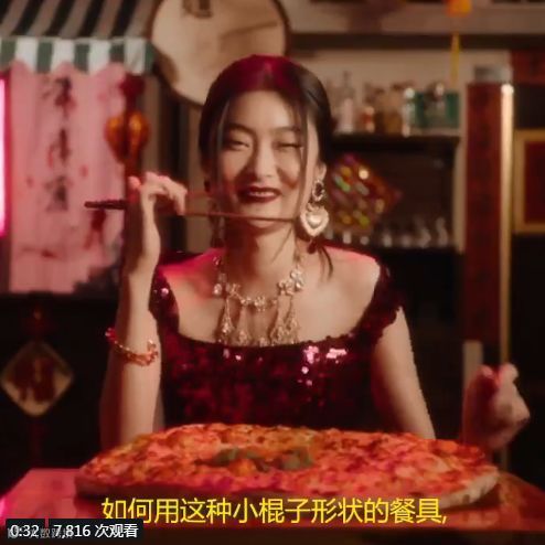 The controversial clip, originally posted by D&G on its Instagram and Sina Weibo accounts, shows a female Asian model in a glitzy red Dolce & Gabbana dress using chopsticks to eat pizza and other Italian foods.