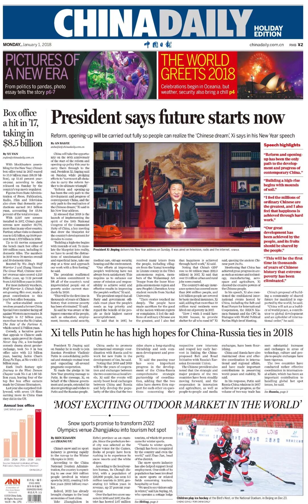 中国日报是中国国家英文日报和中央主要宣传文化单位之一,创刊于1981年,拥有报纸、网站、移动客户端、脸谱、推特、微博、微信、电子报等十余种媒介平台,全媒体用户总数累计约1.5亿,全球发行90万份,其中海外60万份。中国日报是中国走向世界、世界了解中国的重要窗口,是国内外高端人士首选的中国英文媒体。