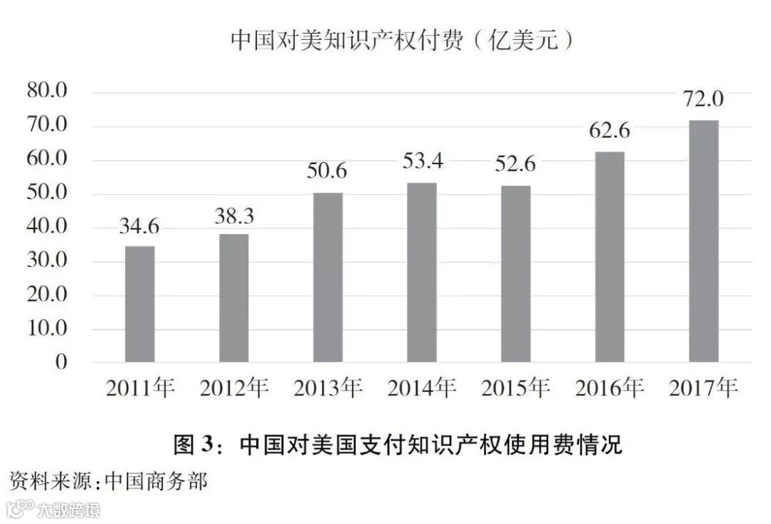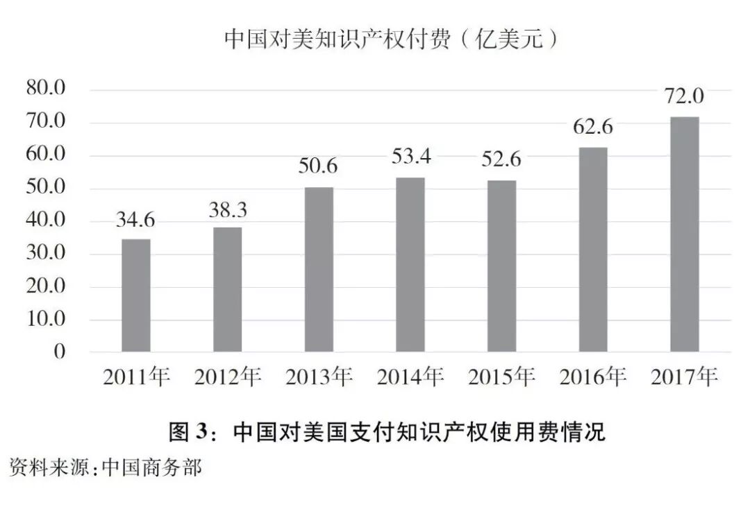➤ 中国对美国支付知识产权使用费持续增加。↓↓↓