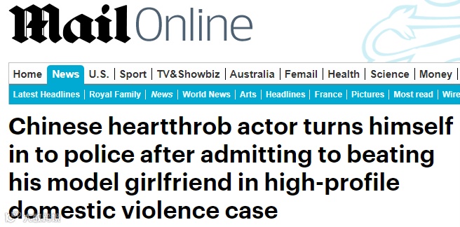 《每日邮报》:在一起备受瞩目的家暴事件中,中国万人迷男星承认殴打日本模特女友,并已向警方自首