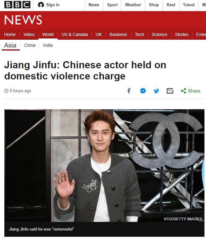 BBC:中国男演员蒋劲夫因家暴指控被抓