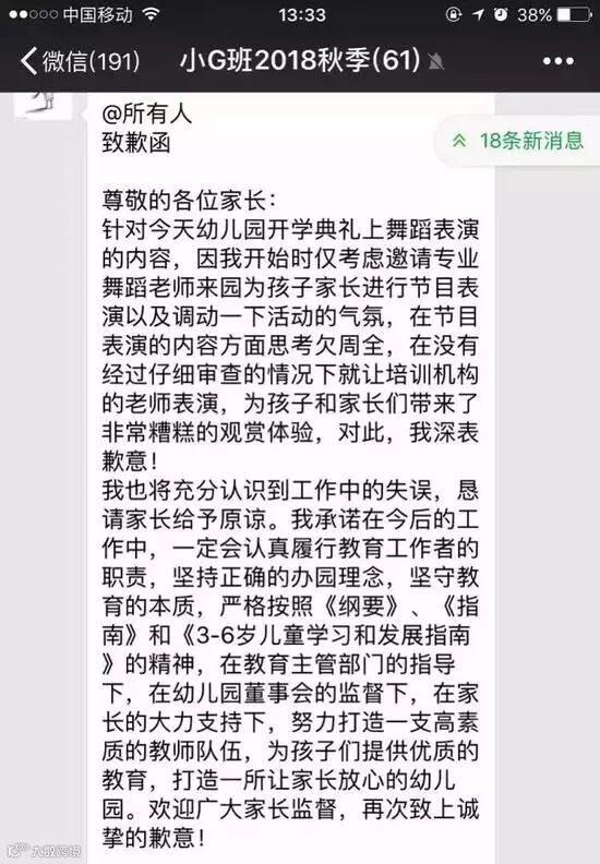 对此,深圳市宝安区教育局表示面向幼儿表演钢管舞欠妥,并责令园方解除该园园长职务。事后,园长也在家长群中发文道歉。
