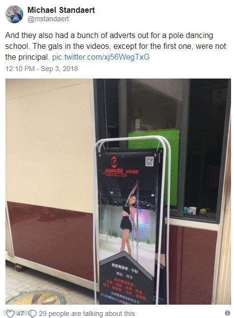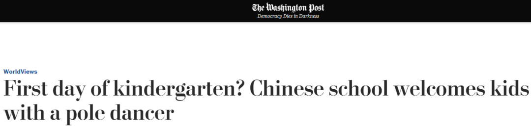 引用这条推文后,《华盛顿邮报》对钢管舞者和小学生进行了详细的描写,将第一天入园,懵懂纯真的小学生与台上大跳钢管舞的舞者强烈对比起来……