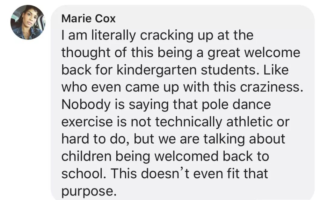 我妻子打电话给园长,但被告知钢管舞是“国际化的、很好的健身运动”……好吧,可能对成年人确实如此,但是对3到6岁的孩子可不是这样。
