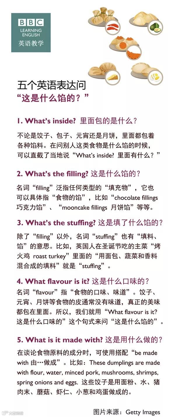 今天,我们来一起学习五个问“这是什么馅的”的句式,过节也别忘了学英语哦~
