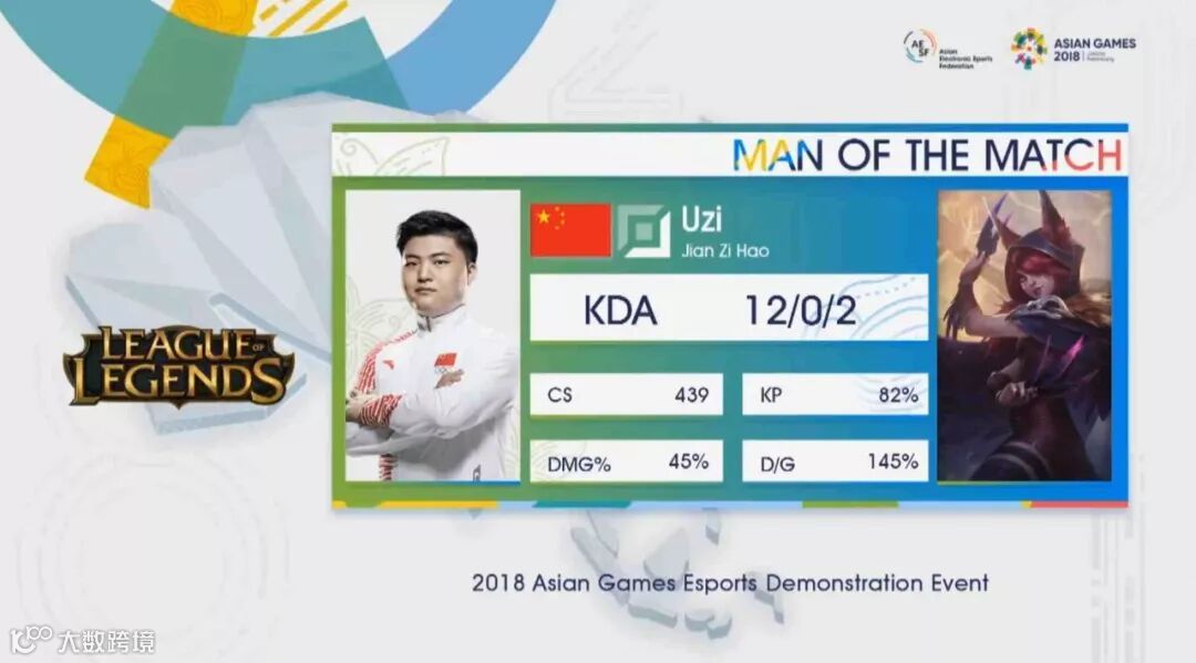 Uzi在胜利的三局比赛中分别使用维鲁斯、霞、霞连续三场获得MVP,至此,Uzi进入2018年以来已经连续获得了LPL春季赛冠军、MSI冠军、亚洲对抗赛冠军以及亚运会电竞表演项目英雄联盟冠军四个重量级冠军。