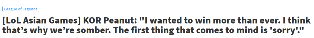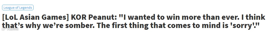 韩国队员Peanut:“我比任何时候都更想赢。我想那就是我们难过的原因。首先闪现在我脑海的就是‘对不起’。”