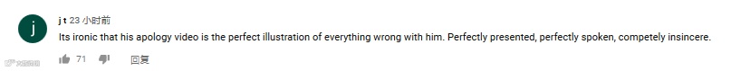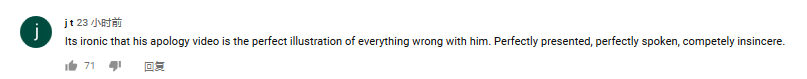 真是讽刺,他的道歉视频完美说明了他最近所有的错误。他说得好,表现得也好,一点诚意也没有。