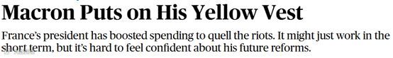 对马克龙总统而言,更大的一盆冷水是,“黄背心”示威者认为改革方案并没有反映他们的诉求。