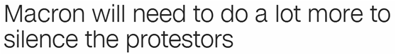 马克龙需要付出更多努力来平息抗议者,贫富差距过大不是一场讲话就可以解决的问题。
