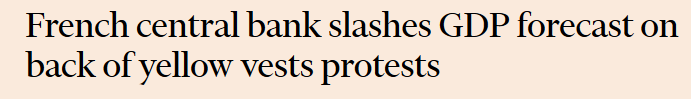 而“黄背心”运动让法国央行再次下调了法国四季度经济增长预期。