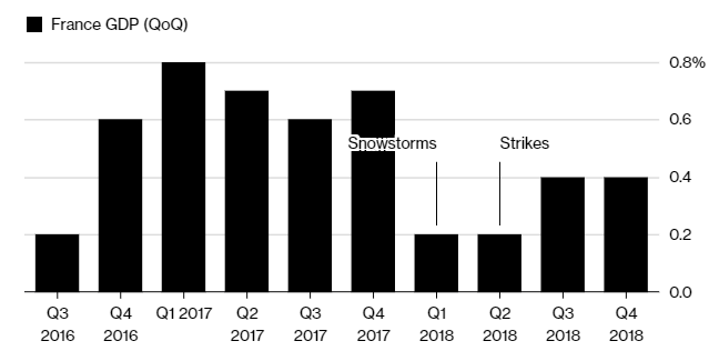 另一方面,法国的经济发展与这次暴乱的产生密不可分。2018年法国GDP增长明显逊于2017年。