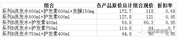 洗护用品经常有特价套装促销。大家动手算一算,就能得出不同套装实际折扣率。