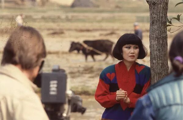 1987年,靳羽西在广西桂林拍摄纪录片《变化中的中国》。受访者供图