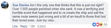 也有一些网友认为复制泰坦尼克号是对沉船中逝者的不尊重: