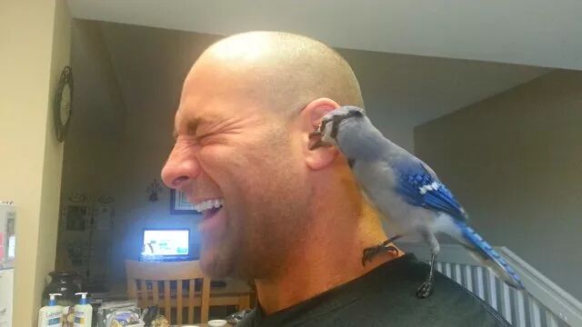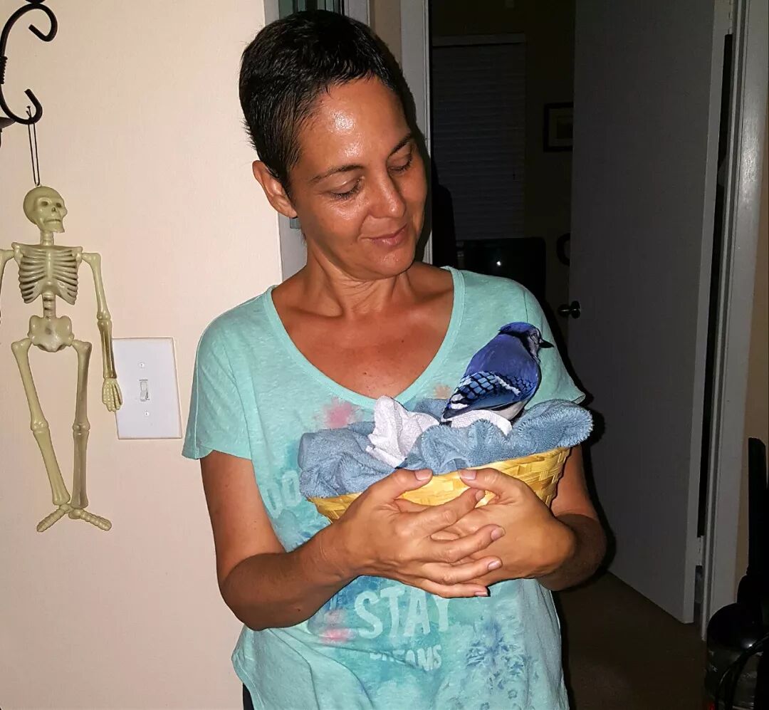 “I never thought I would have this sort of bond with a bird, let alone a blue jay. He is the sweetest, most kind little bird in the whole world. He came at a time when we needed him and he has totally changed our lives.”