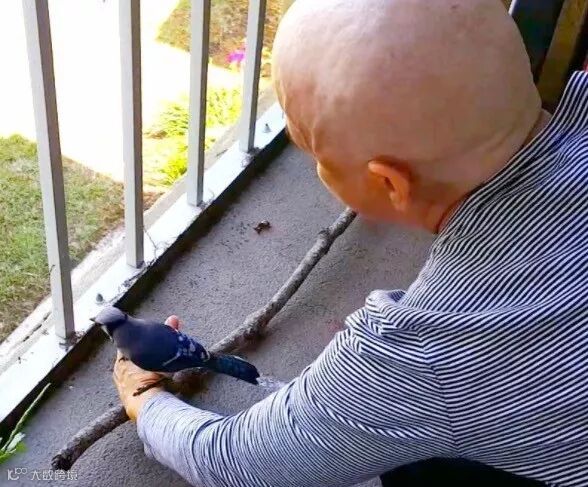 “我从来没有想到过我会与一只鸟儿建立如此亲密的关系,更别提是一只蓝冠鸦了。它是整个世界上最可爱、最友善的小鸟了。在我们最需要的时候,它降临到我们的生命中,彻底改变了我们的生活。”