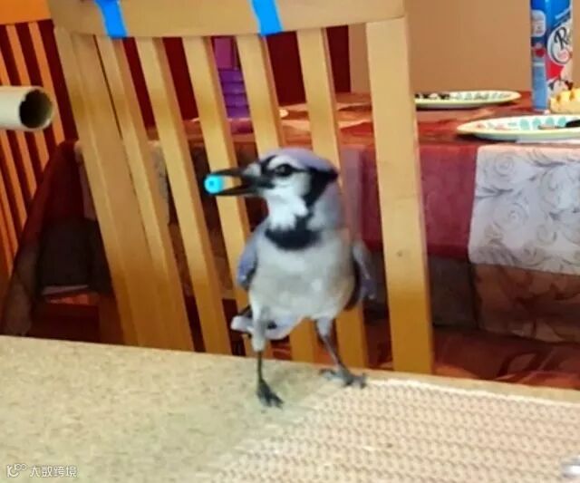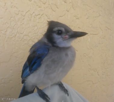 随着Gracie渐渐换上蓝色的羽毛,一家人惊喜地发现,这个小家伙原来是一只漂亮的雄性蓝冠鸦(blue jay)。