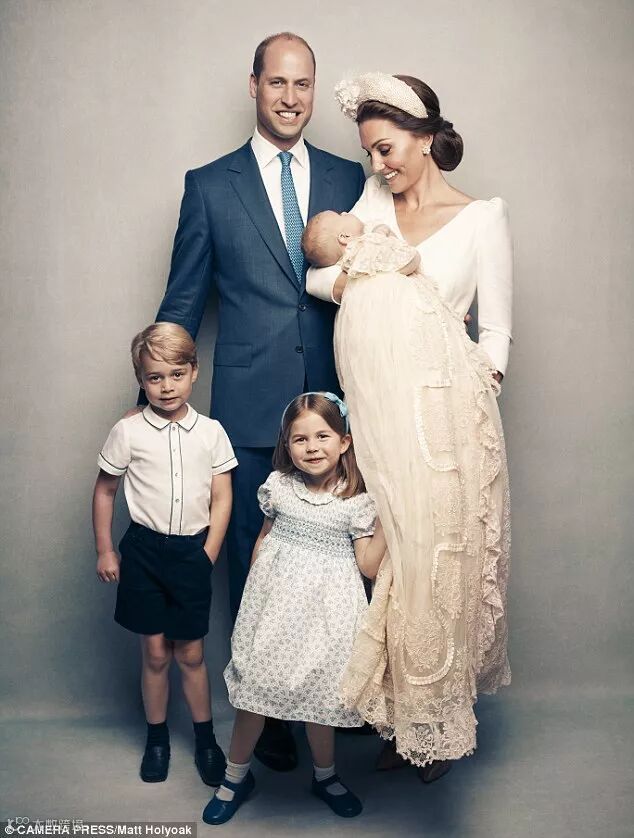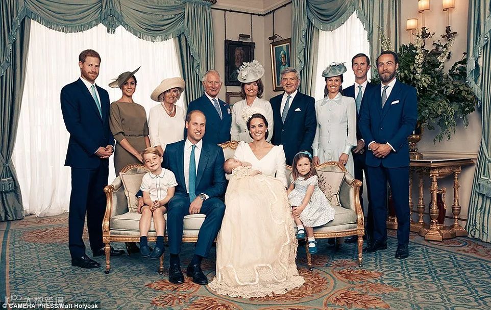 值得注意的是,女王和丈夫菲利普亲王并没有到场,因为她有别的安排,没有参加路易小王子的受洗仪式,也就缺席了新版全家福的拍摄。