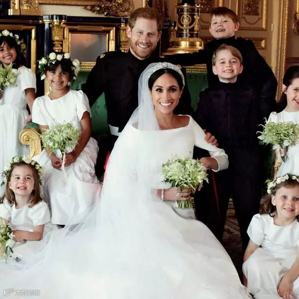 哈里王子、梅根、查尔斯王储、康沃尔公爵夫人卡米拉及凯特的家人,包括凯特母亲卡罗尔、父亲迈克尔、弟弟詹姆斯、妹妹皮帕及妹夫詹姆斯·马修也美美地出现在了照片中。