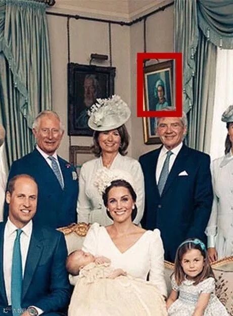不过,眼尖的媒体发现,虽然女王并没有到场,但她却以一种特殊的方式与家人”合影“了。