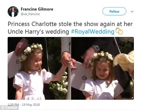 夏洛特公主在她叔叔哈里王子的婚礼上又抢镜了!