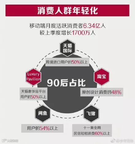 其中,移动端月度活跃消费者有6.34亿人,而90后扛起了半壁江山。