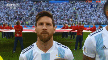 比赛开始前,梅西听着国歌,眼神坚定,他肩负着拯救这支队伍的重任。