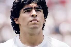 马拉多纳双手交叉放在双肩,抬头望向天空。