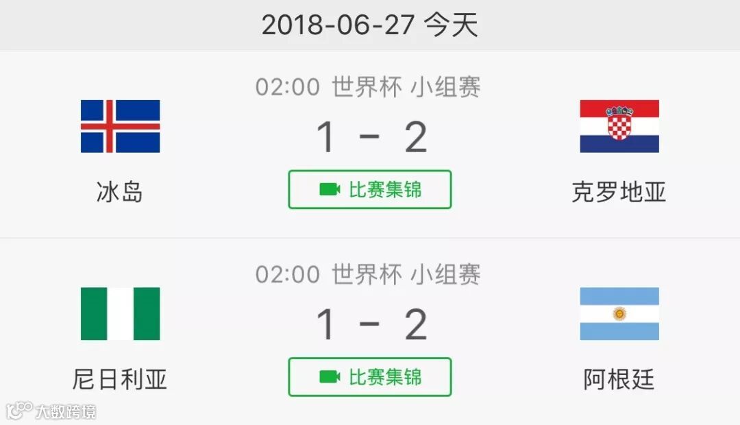 阿根廷和尼日利亚的生死大战中,潘帕斯雄鹰2比1摘得胜利;而在同组另一场比赛中,冰岛1-2不敌克罗地亚。