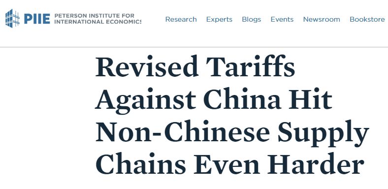 彼得森国际经济研究所报告:对中国的新关税对中国不参与的供应链打击甚至更大