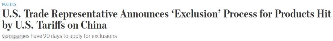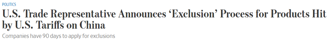 《华尔街日报》:美国贸易代表处为受关税影响的产品设置关税“豁免”,企业有90天申请豁免时间