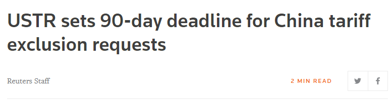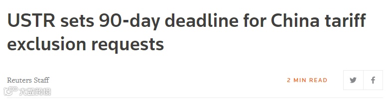 路透社:美国贸易代表处为美国企业的关税豁免设置了90天的时限