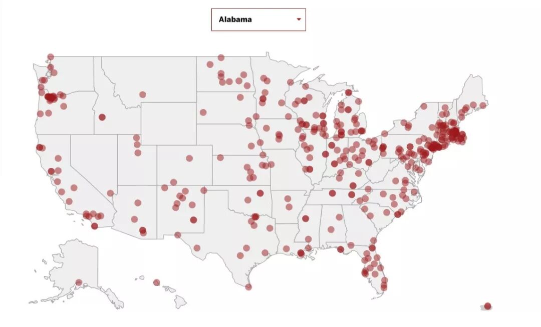 《波士顿环球报》还制作了“宣战”媒体的地图。毫不夸张地说,骂声连起来可绕美国一圈。
