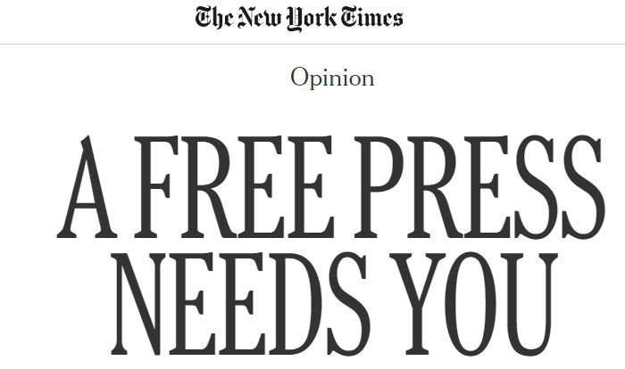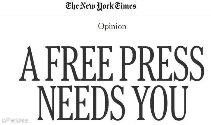 《纽约时报》报道截图:一个自由的新闻界需要你
