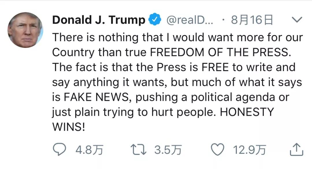 自上台以来,美国总统特朗普多次公开抨击美国媒体炮制假新闻,是“美国人民的公敌”。“Fake News”的指责声不绝于耳。